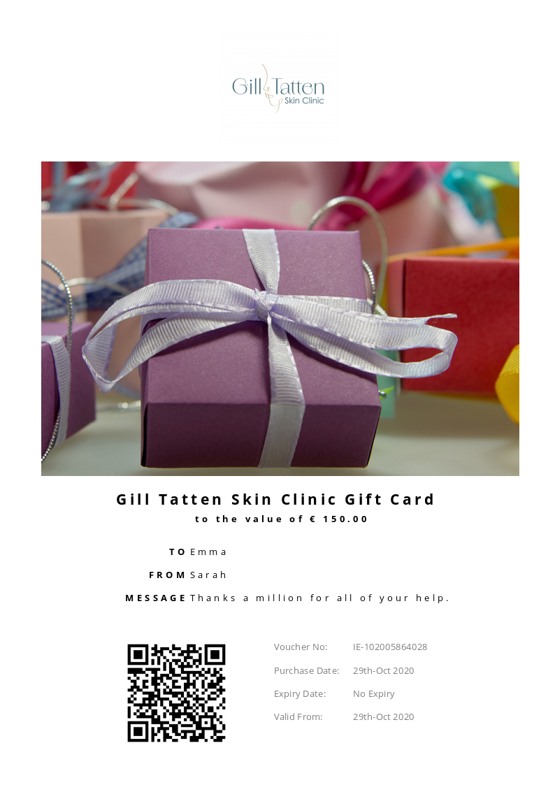 Gill Tatten Skin Clinic allows you to purchase instantly printable gift vouchers, special offers and tickets using the Voucher Connect platform.